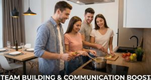 同じマンションの別々の部屋に宿泊することで、適度なプライバシーを保ちつつも、帰宅時に顔を合わせたり、休日にお互いの部屋で自炊した料理を囲んだりといった交流が自然に発生。